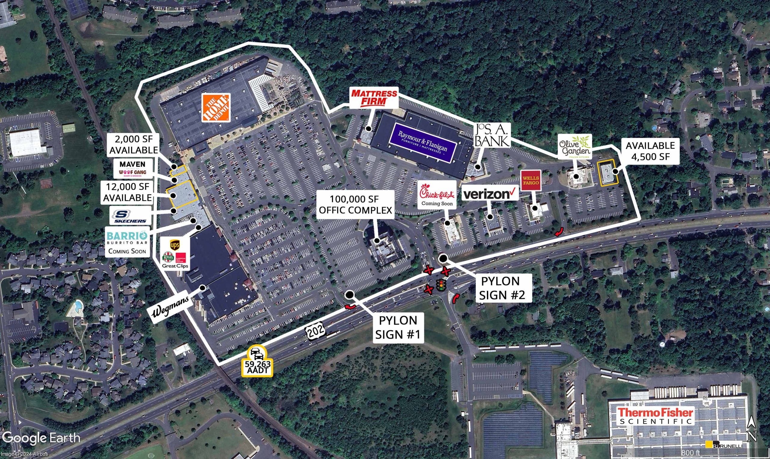 Located at a traffic signal on Route 202 with traffic counts of 59,263 cars per day!