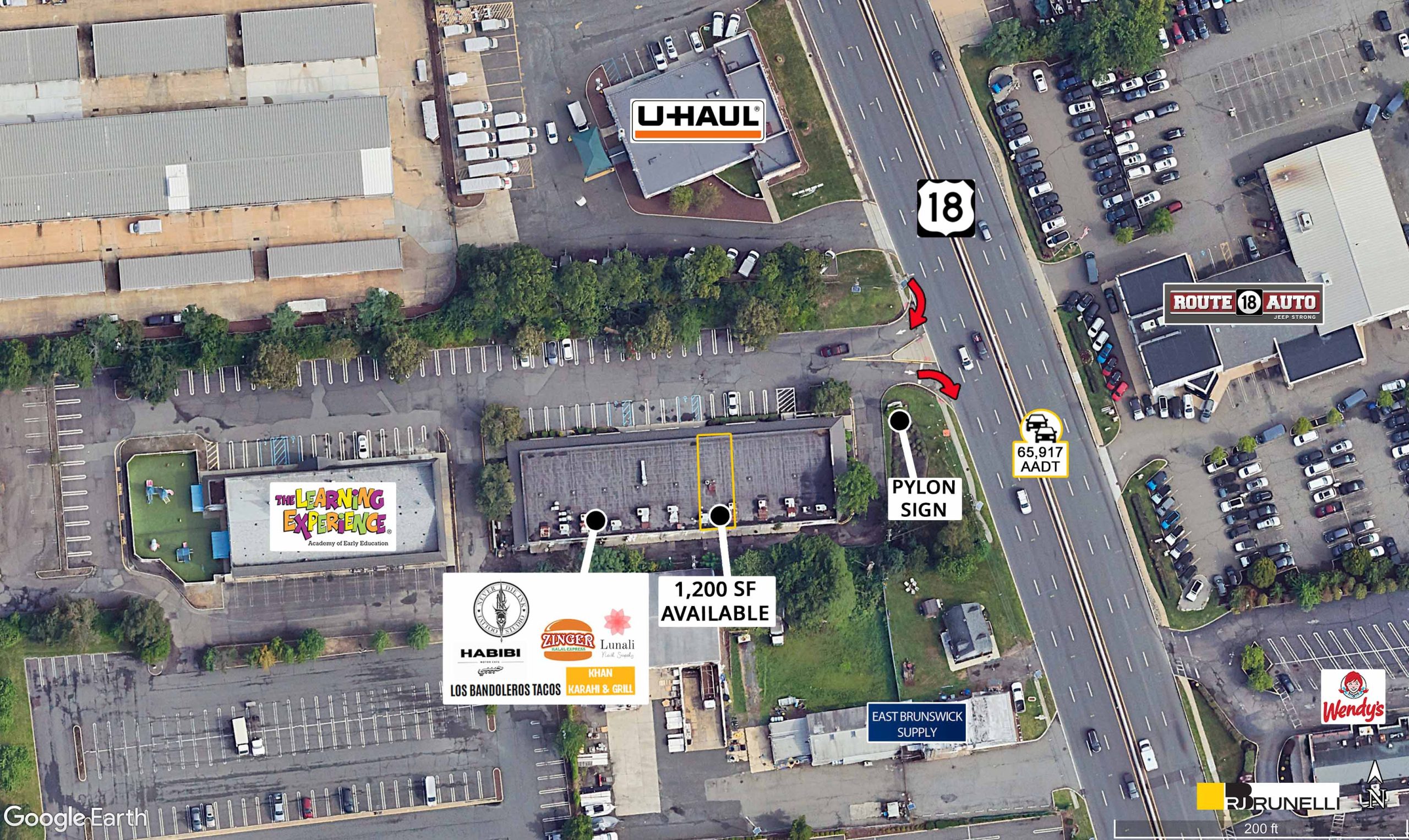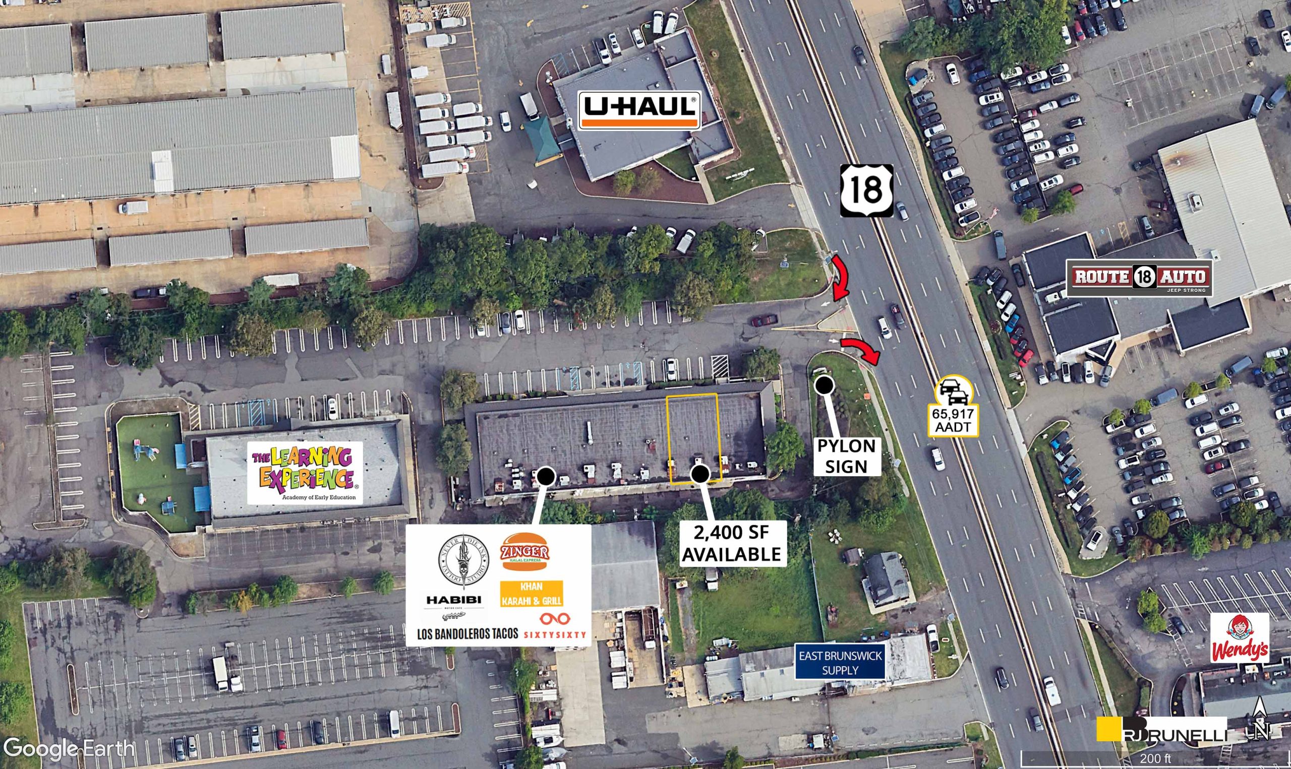 - Situated just south of the signalized intersection of Route 18 S and West Ferris Street in the heart of East Brunswick.