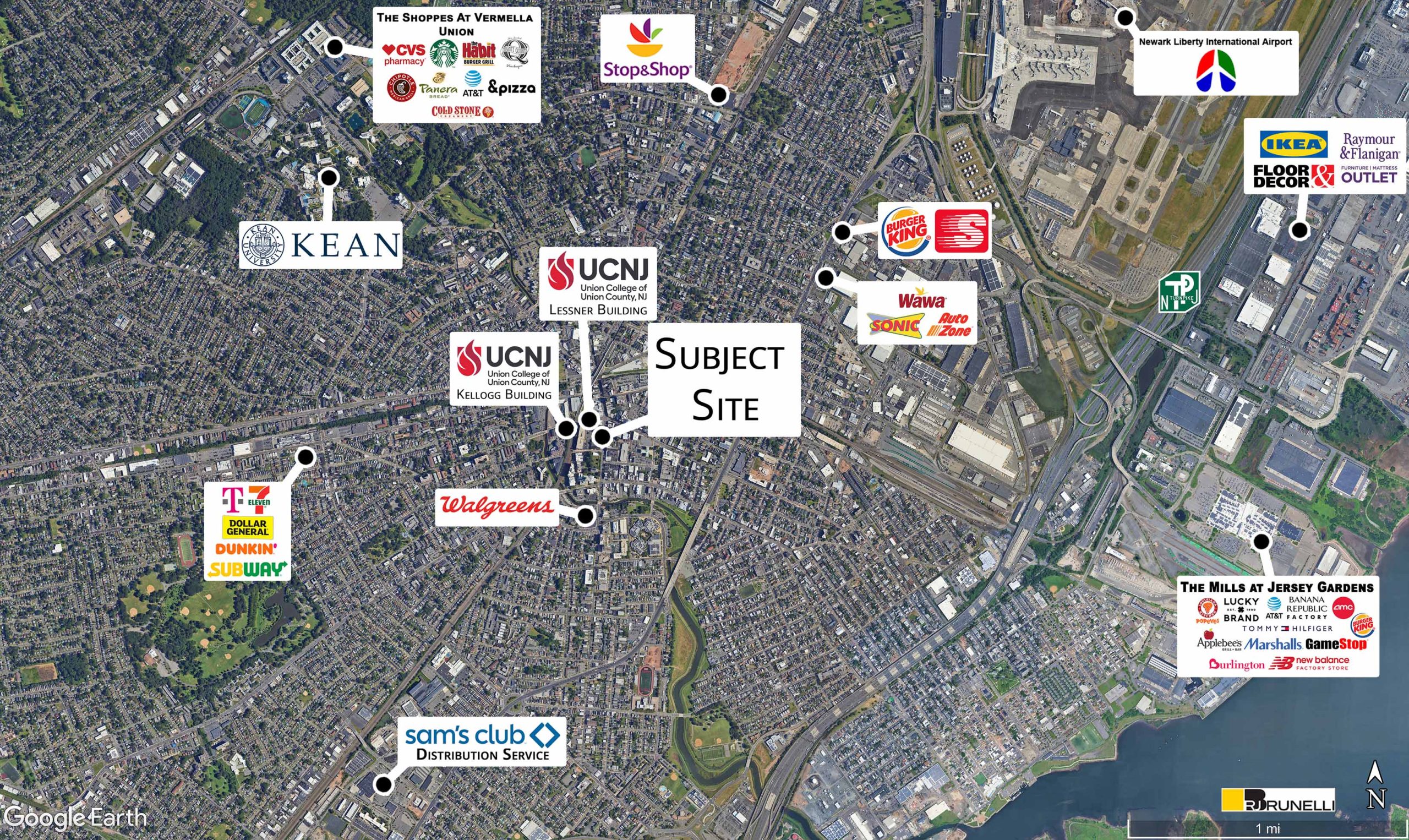 Within just 3 blocks of the subject site is Trinitas Regional Medical Center; the Elizabeth train station, which services about 3,000 passengers per day; and many regional and national retailers, and restaurants