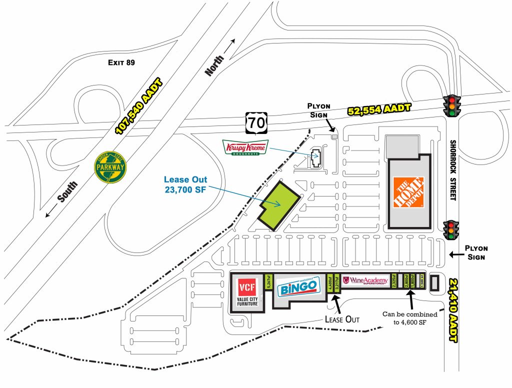 Easy access to and from The Garden State Parkway Exit 89 and access points on Rt 70 and Shorrock St. with a combined Traffic Count of 74,000 cars per day.