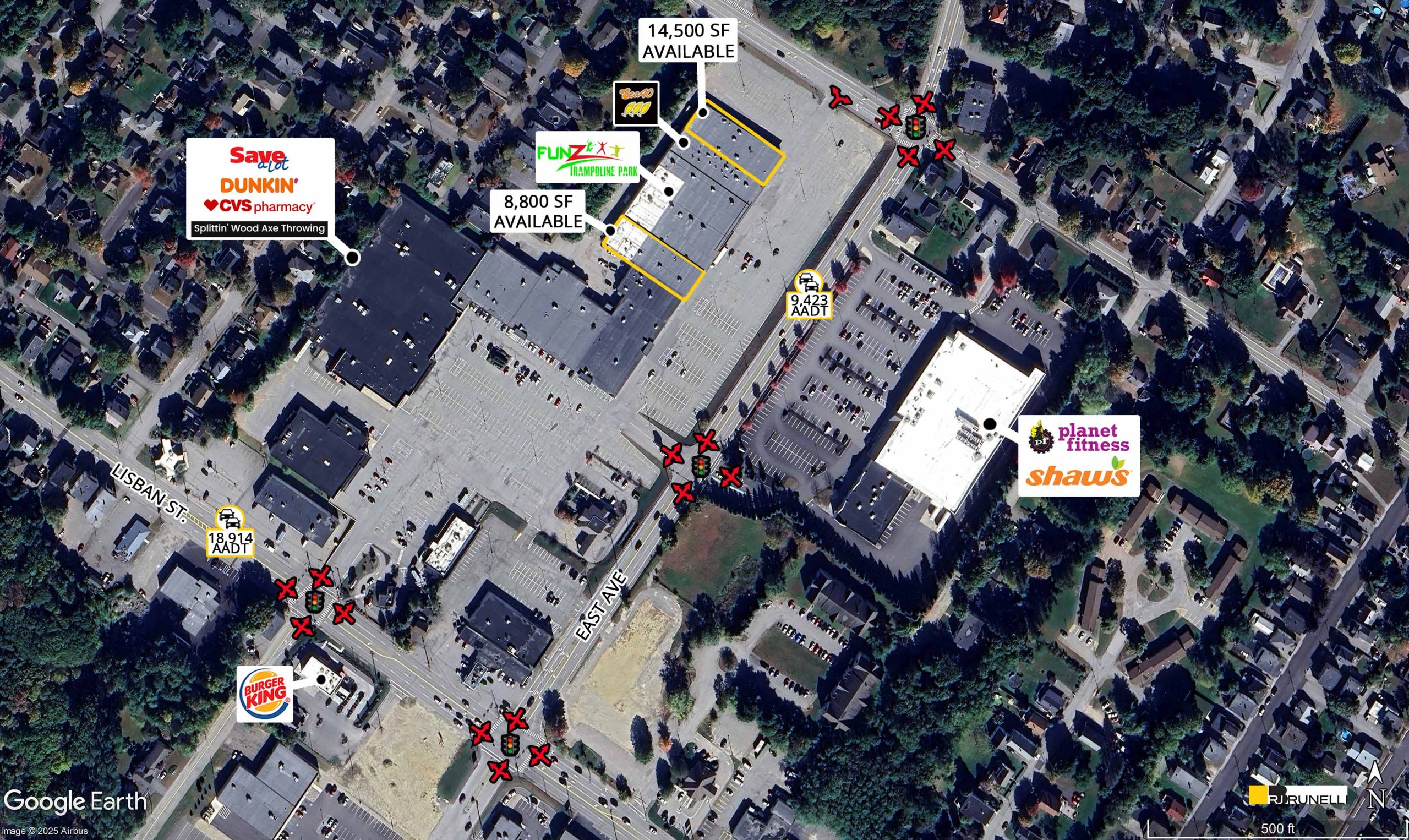 Located at the intersection of East Avenue and Lisbon Street, this prime retail space benefits from signalized traffic lights and a combined daily traffic count of 28,337 cars. Just seconds from major retailers such as Planet Fitness, Shaw’s, Starbucks, Burger King, and Dollar General, it offers exceptional visibility and steady customer traffic.