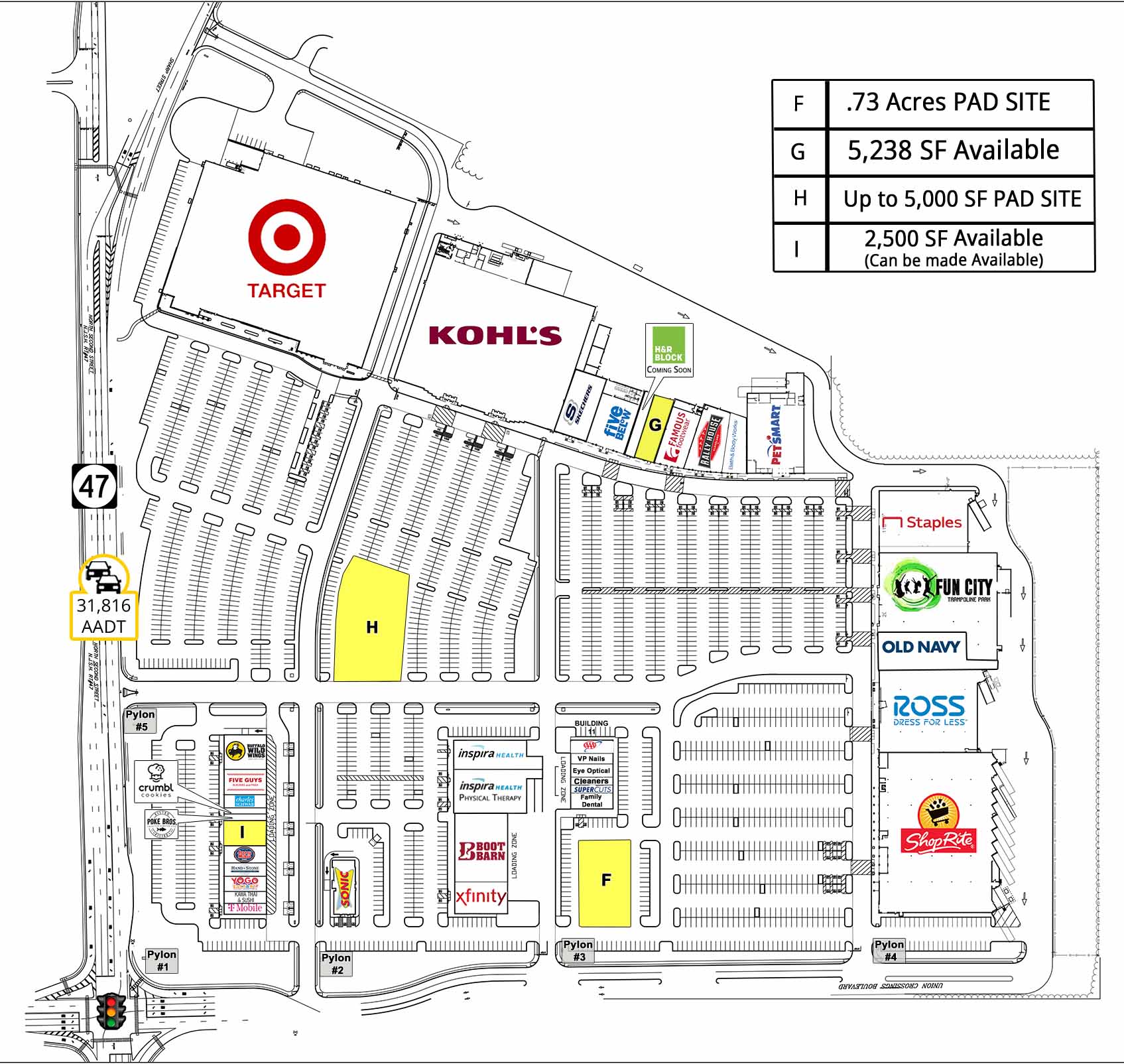 - Easy access to Route 55, with 38,617 vehicles per day, and Route 47, with a traffic count of 31,816 vehicles per day