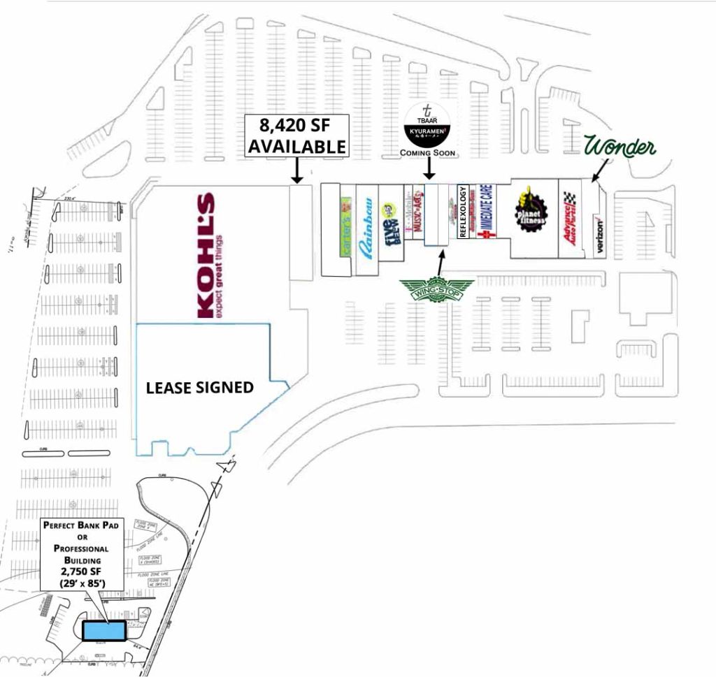 Join Kohl’s, Planet Fitness, Five Below, Advanced Auto Parts, T Mobile, Jersey Mike’s, Immediate Care, Wings Stop, Wonder, and Kyuramen opening soon.