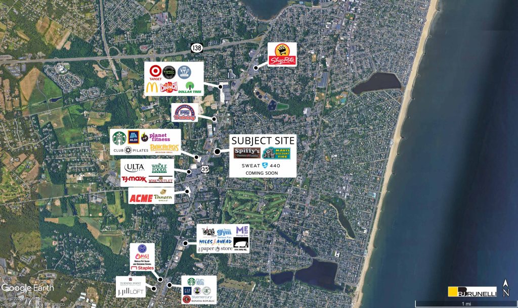 Per Placer, the adjacent Dunkin Donuts is ranked #36 out of 628 locations in NJ, which is in the top 9%. Starbucks, located across the street, is ranked #31 out of 181 locations in NJ. Allaire Plaza, anchored by Whole Foods, TJ Maxx, and ULTA, is .23 miles South of the subject site and received 2.2 million visits in the last 12 months.