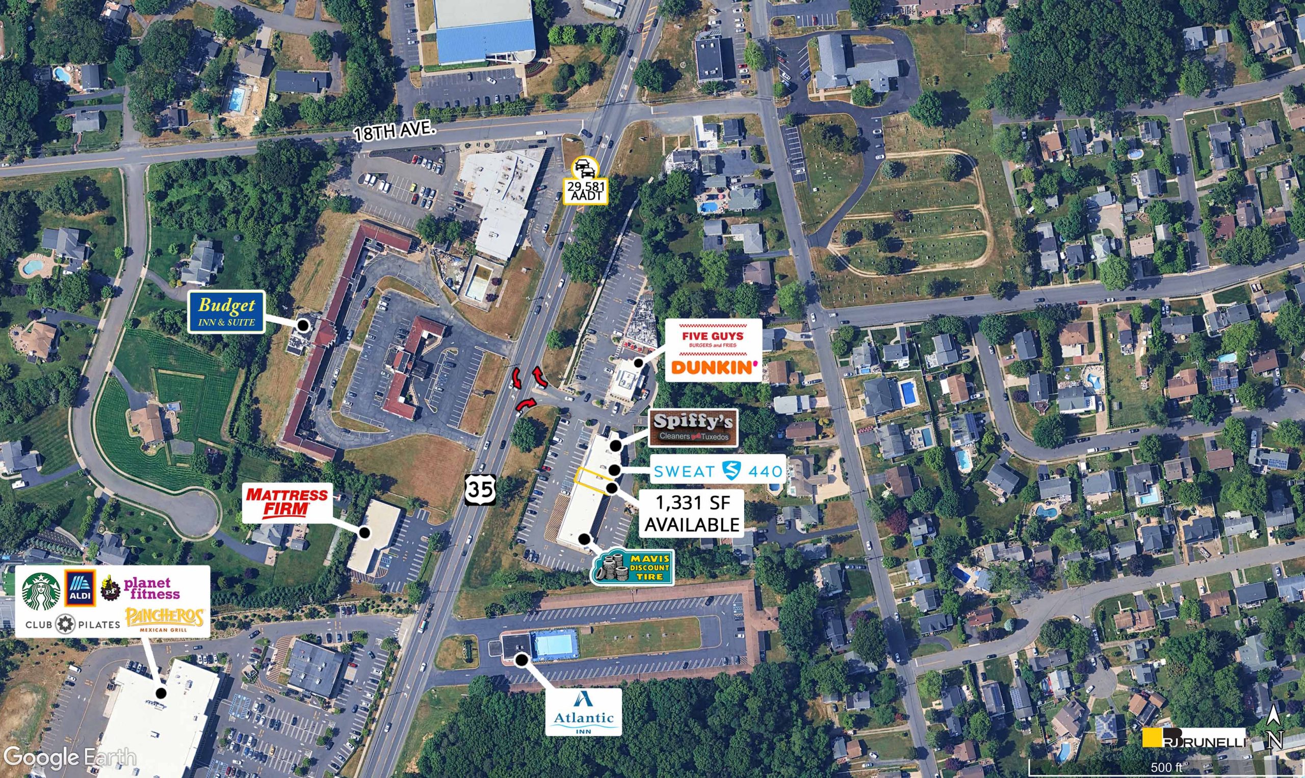 The subject center is located in the middle of the trade area, has full access on Route 35, and the subject space of 1,331 SF has 21 feet of frontage!