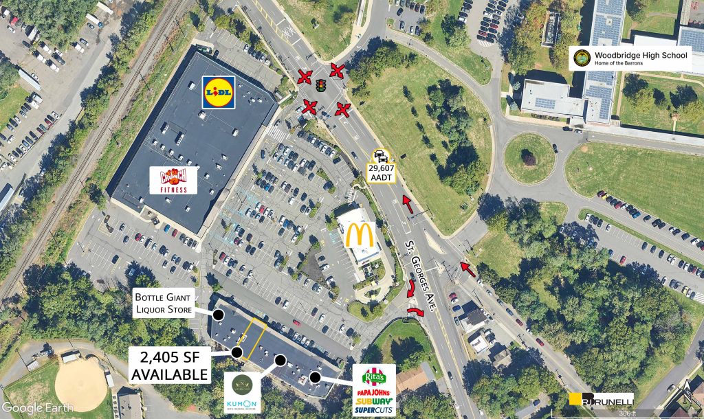 Located at a traffic light on St Georges Ave., (Rt. 35), which has a traffic count of 29,607 cars per day