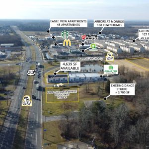 New PAD Site for QS Restaurant with drive-thru, and New Proposed Daycare. At the signaled intersection with new residential growth in immediate proximity. Route 33 Commuter/Commerce Route to NJ Turnpike (1.5 miles). Spending by consumers within 3-miles exceeds $500 Million.* Seeking: Quick Service Restaurant with Drive Thru, Daycare/Childcare Center, Salon, Restaurant (Pizza, Delicatessen, other), Health